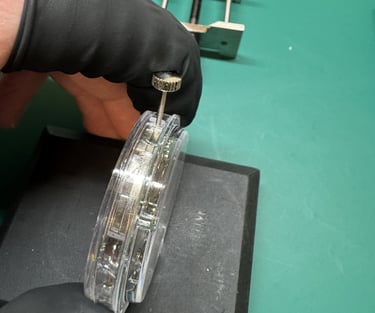 As I was working, I noticed a few tiny steel flakes from the tweezers and stopped immediately. I paused to inspect and blow the movement clean with the air blower. I also cleaned the bench again before continuing.